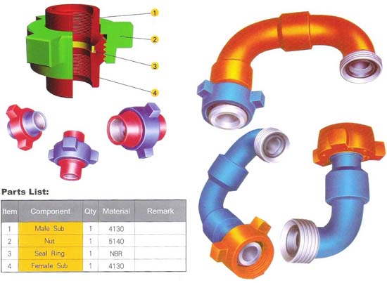 High-pressure  union , importing  international  advanced  technology , is  forged  with  high- strength  alloy  steel , strict  heat  treatment  process  can  ensure  that  the  nipple  have  uniform  metallurgical  structure  and  pressing  and  the  material  meets  ASTM  and  AISI  Standard  and  technology  indexes  conform  to  APT  Spec  6A , the  product  adopts  some  end  connections  of  pipeline  thread  product  thread , butt-weld  and  compress-seal .